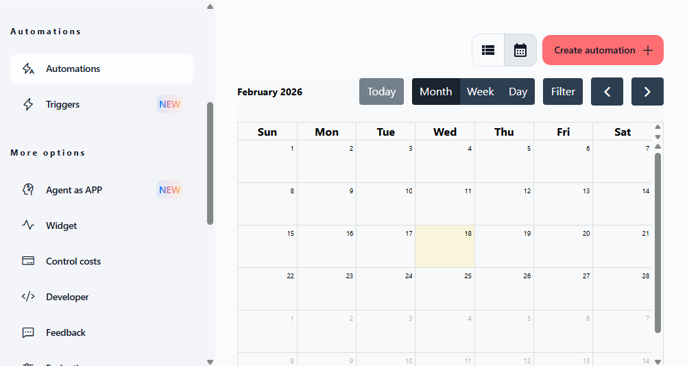You can now visualize and schedule your agent automations using a clean calendar interface instead of the traditional table format. Perfect for planning recurring tasks, scheduling one-time automations, and getting a visual overview of your automation timeline.