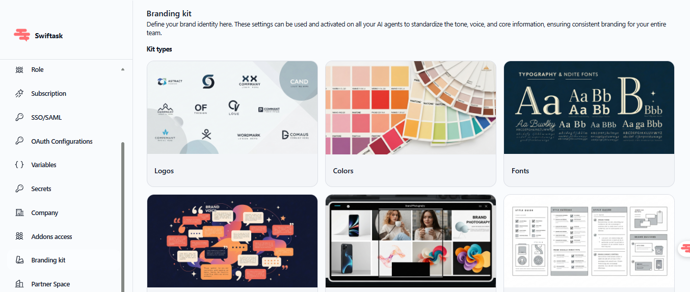 Result: consistent brand identity across all your Swiftask agents.