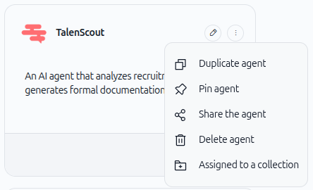 Click the three-dot menu icon (⋮) on the agent card to open the actions menu.